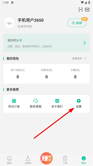 2、在我的頁面,找到并點擊設(shè)置選項,進入設(shè)置界面。