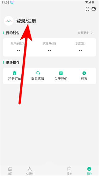 2、在個人頁面,點擊登錄/注冊選項,進入手機號快速登錄頁面。