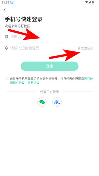 3、在手機號快速登錄頁面,輸入手機號并點擊獲取驗證碼,然后輸入驗證碼。