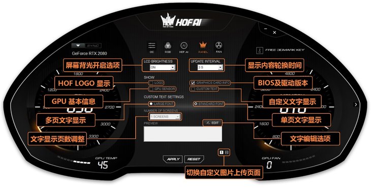 提到全新一代的RTX 2080/2080 Ti HOF顯卡,其搭載的顯示屏幕能算是最大的亮點(diǎn)之一,其不但繼承了一代的全部功能,還可以支持自定義圖片上傳,并且全部的操作通過(guò)軟件【HOF AI】即可全部完成。
