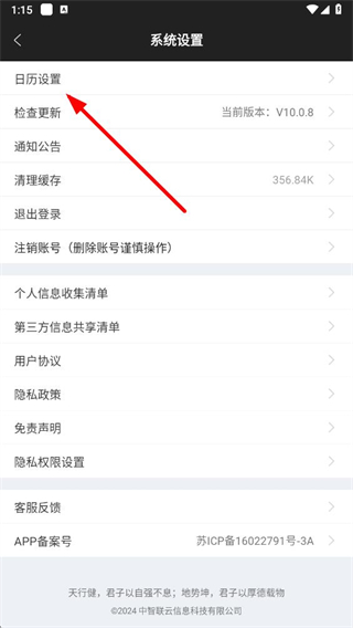 3、在系統(tǒng)設(shè)置界面,點(diǎn)擊日歷設(shè)置的選項(xiàng)。