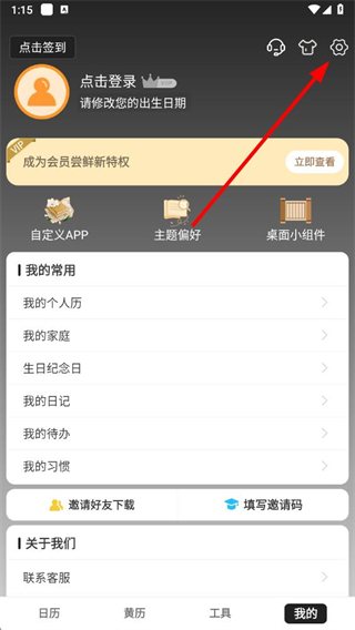 2、在我的頁面,點(diǎn)擊右上角的設(shè)置圖標(biāo),進(jìn)入系統(tǒng)設(shè)置界面。