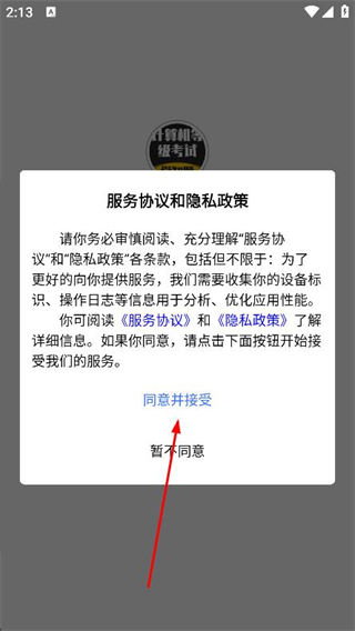 1、打開app,在隱私政策提示框中,點擊同意并接受。