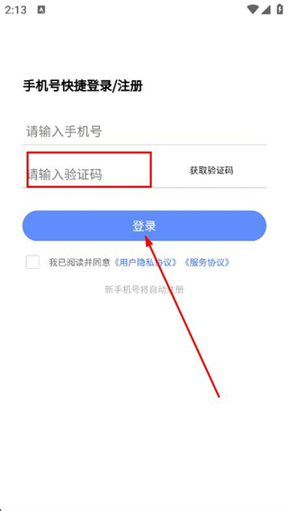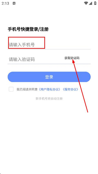 2、進入登錄頁面,輸入手機號,并點擊獲取驗證碼。
