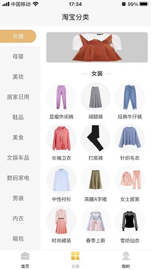 3、同步查看淘寶產(chǎn)品的分類信息,利于用戶在這里查找喜歡的淘寶產(chǎn)品;
