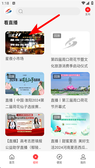 2、在視聽(tīng)頁(yè)面,選擇想要觀看的直播回放內(nèi)容,點(diǎn)擊進(jìn)入回放播放頁(yè)面。