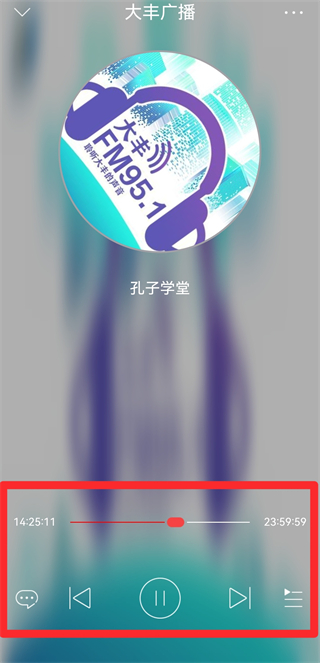 4、在節(jié)目播放界面,可通過進(jìn)度條調(diào)整收聽進(jìn)度,利用播放控制按鈕操作播放。