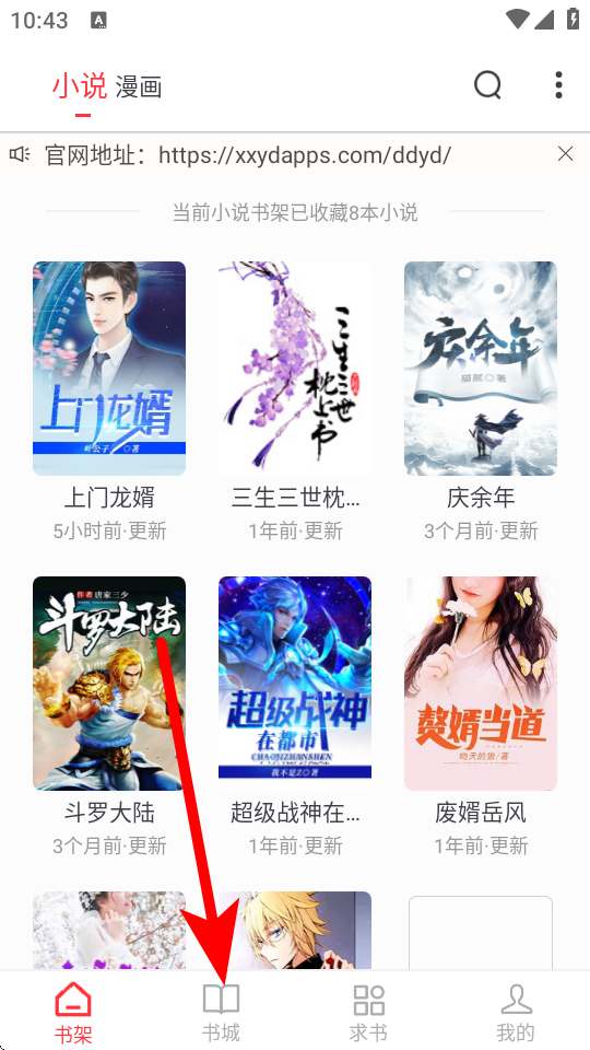 1、在點點閱讀書架頁面,點擊書城選項,進(jìn)入書城界面。