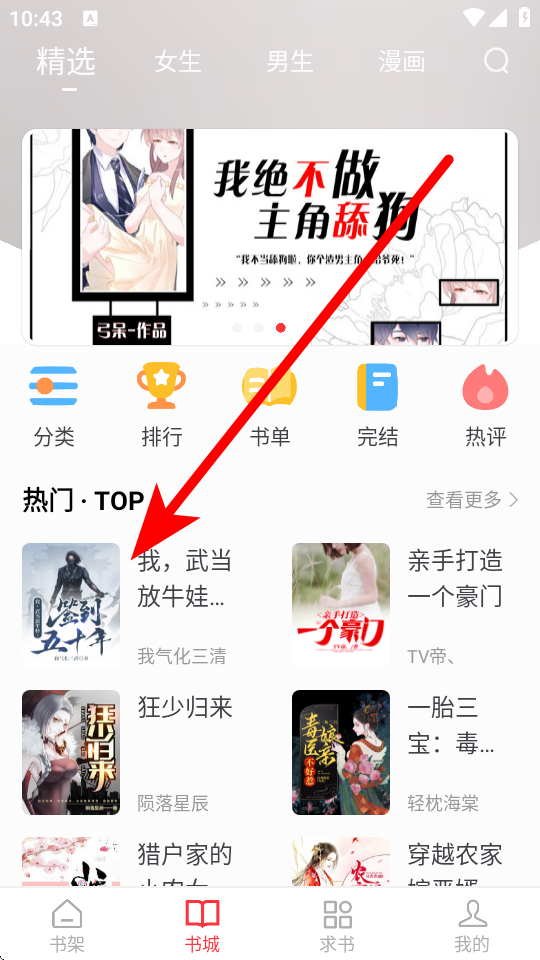 2、在書城界面,點擊想要聽的小說,如我,武當(dāng)放牛娃,進(jìn)入小說詳情頁面。