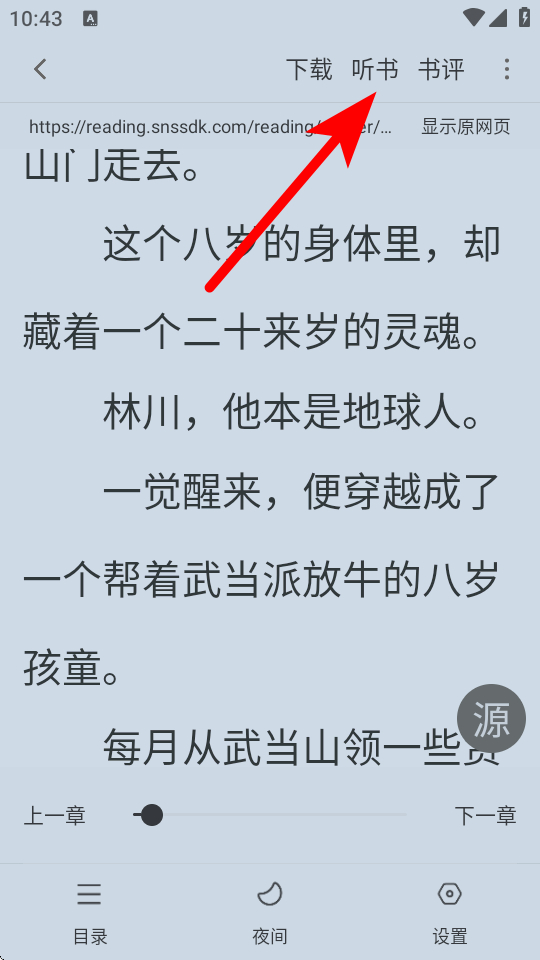 4、在小說閱讀界面,點擊上方聽書選項,即可開始聽書操作。