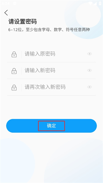 5、直接輸入自己原本賬號設(shè)置的密碼,然后下方繼續(xù)輸入自己想要更換的新密碼,再次輸入確認新密碼,點擊【確認】更換自己的密碼;