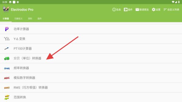 2、向下滑動找到并點擊分貝單位轉(zhuǎn)換器。