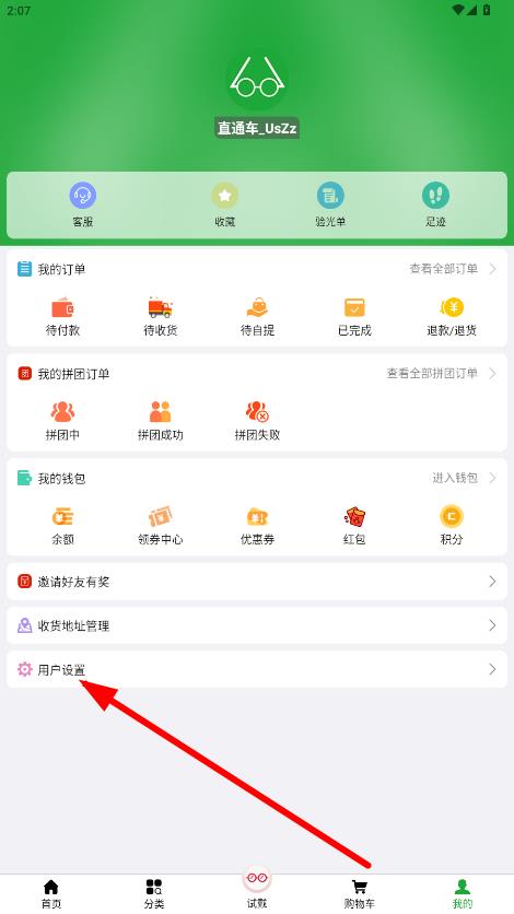 2、在個人中心頁面,點擊用戶設置選項,進入設置界面。