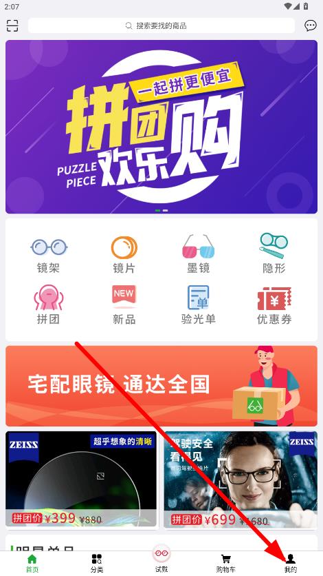 1、邀好友一起來眼鏡直通車app拼團配眼鏡,價格更加實惠。