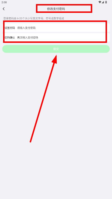 4、在支付密碼修改頁面,依次輸入要設置的支付密碼以及確認密碼,輸入完成后點擊提交,即可完成支付密碼的修改。