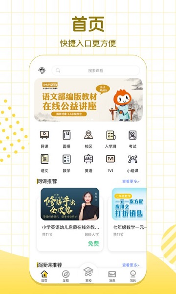 4、線(xiàn)下選課報(bào)班360度了解校區(qū)和老師,在線(xiàn)預(yù)約課程試聽(tīng),校區(qū)實(shí)地感受課堂效果;課程優(yōu)惠搶先知道,足不出戶(hù)輕松繳費(fèi)報(bào)班
