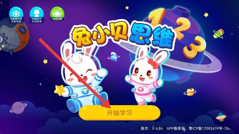 1、打開兔小貝思維軟件,點擊主界面的開始學(xué)習(xí)。