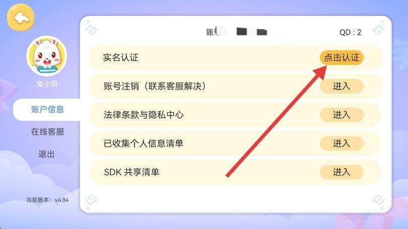 3、進入賬戶信息頁面后,點擊實名認證的認證按鈕。