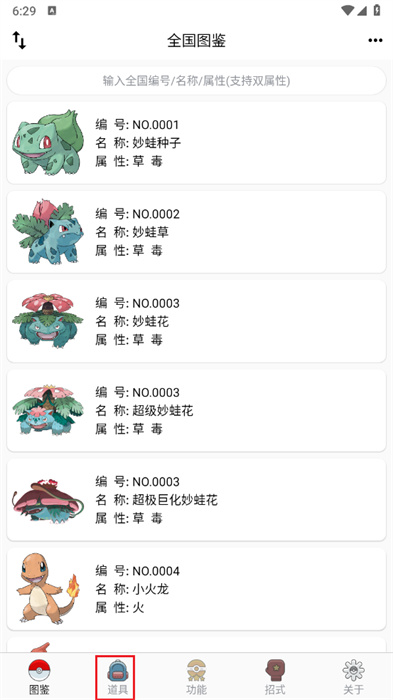 1、全國(guó)圖鑒:包含寶可夢(mèng)的基本信息,進(jìn)化鏈和招式還在優(yōu)化中。