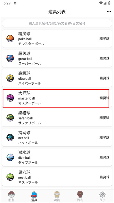 2、此時(shí)將會(huì)顯示出各種不同的精靈球,需要點(diǎn)擊你想要了解的精靈球;