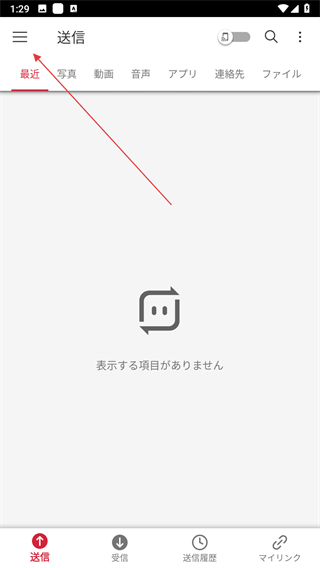 1、打開(kāi)Send Anywhere應(yīng)用,點(diǎn)擊三條橫線菜單。