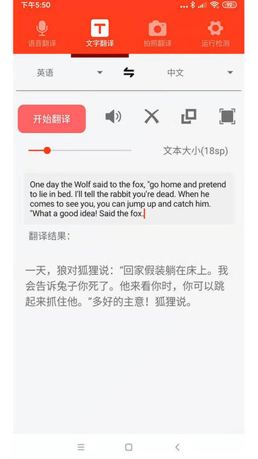 3、你可以以拍照的方式翻譯照片的內(nèi)容,不需要你的手動輸入,一鍵就可以識別照片輕松翻譯的結(jié)果。