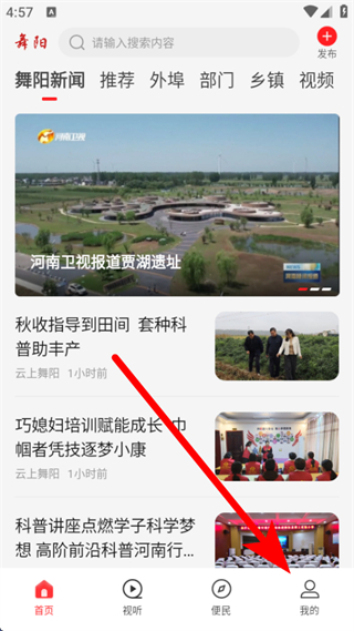 1、在云上舞陽(yáng)的首頁(yè),點(diǎn)擊底部我的,進(jìn)入個(gè)人的頁(yè)面。