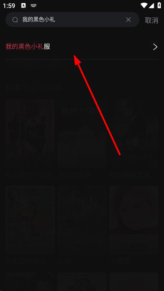 3、在輸入框中輸入你想要查找的電影名稱關(guān)鍵詞,比如我的黑色小禮服,點擊對應(yīng)的電影條目,就能查看該電影資源并進(jìn)行播放。