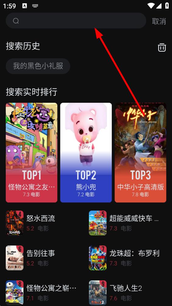 2、點擊后進(jìn)入搜索頁面,在頂部的搜索欄中點擊輸入框。