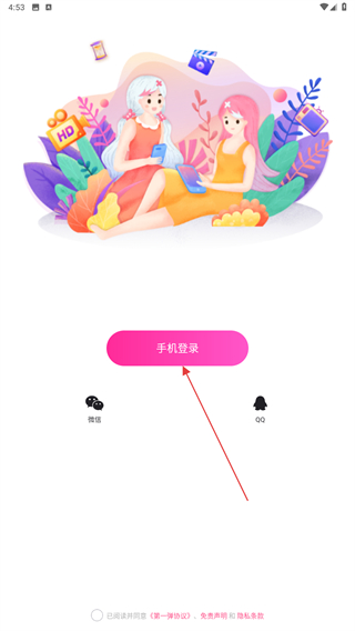 1、打開第一彈動漫APP,進入時點擊手機登錄的圖標。
