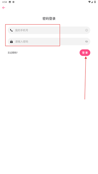 3、在密碼登錄的界面下,輸入手機號、密碼,再點擊登錄的按鈕。