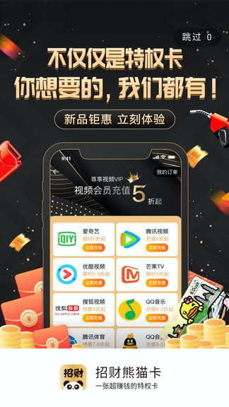 在招財熊貓app里招財熊貓卡是一張能省錢更能賺錢的專屬特權卡。在招財熊貓App領取招財熊貓卡會員可享受超400+專屬優(yōu)惠特權。
