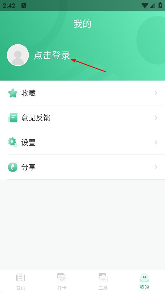 2、在個人頁面點擊“點擊登錄”,進入登錄界面。