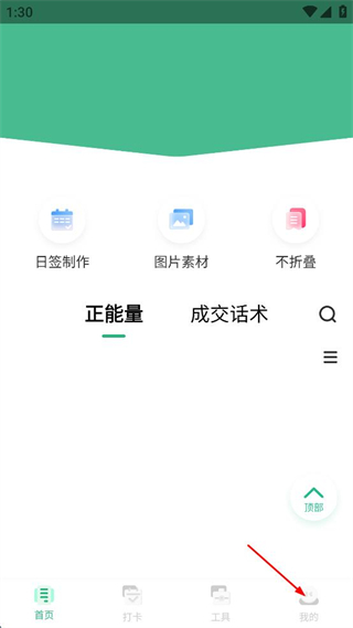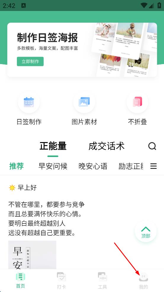 1、打開早安語錄軟件,點擊右下角我的,進入我的頁面。