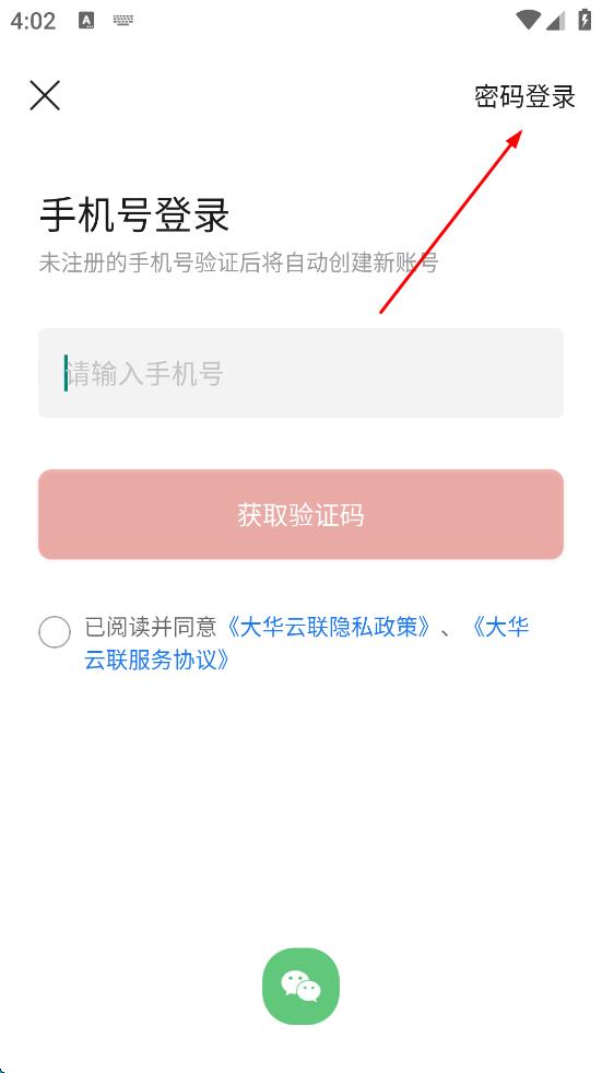 2、在登錄頁面,點(diǎn)擊右上角密碼登錄選項(xiàng),切換到密碼登錄界面。