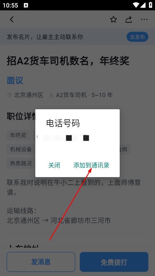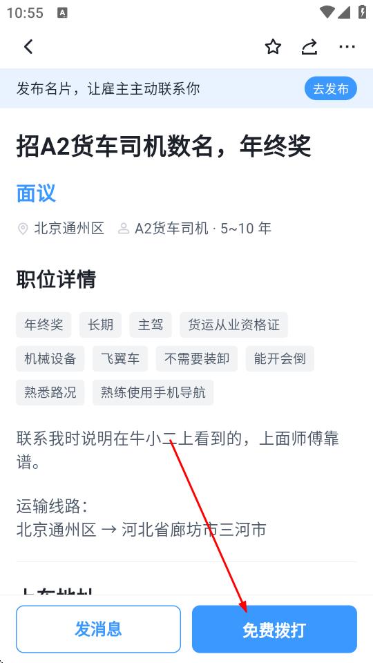 3、在職位詳情頁面中,找到并點擊免費撥打按鈕。