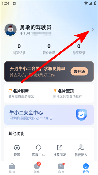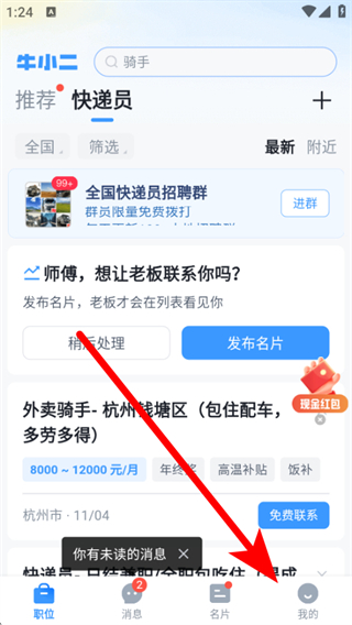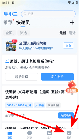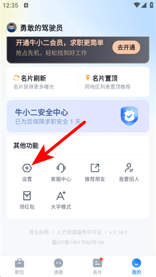 1、打開牛小二招聘APP,需要點擊右下角我的,進入個人頁面。