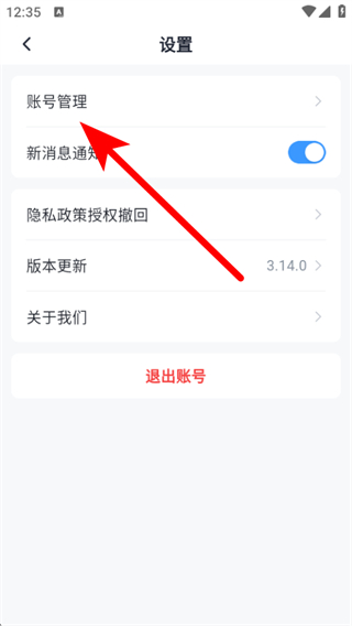2、在設置的頁面,點擊賬號管理按鈕,進入賬號管理的頁面。