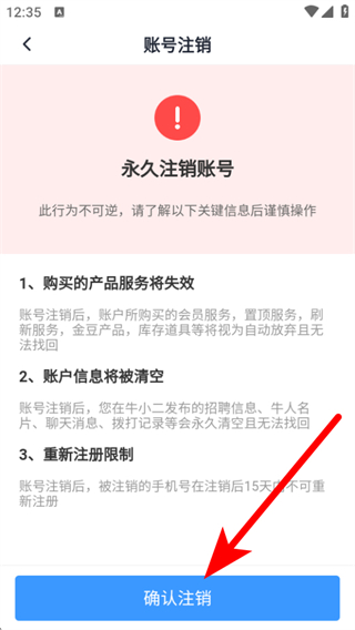 4、在賬號注銷說明頁面,點擊確認注銷,完成賬號注銷操作。