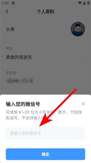4、在輸入框中輸入微信號,點擊確定,完成微信號的添加操作。