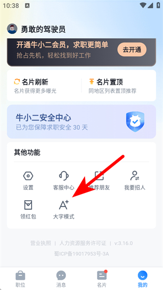2、在個人頁面的其他功能區(qū)域,點擊大字模式的選項。
