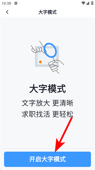3、進入大字模式頁面后,點擊開啟大字模式按鈕,完成設置。