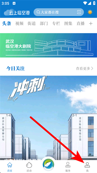 1、打開(kāi)云上臨空港APP首頁(yè),點(diǎn)擊底部我,進(jìn)入個(gè)人頁(yè)面。