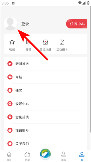 2、在個(gè)人的頁(yè)面,我們需要點(diǎn)擊登錄按鈕,進(jìn)入登錄界面。