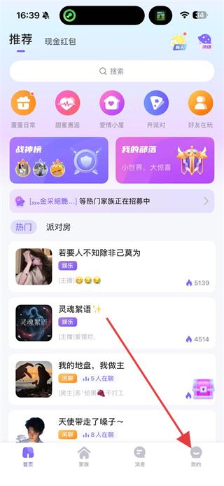 1、打開蛋蛋部落APP,點擊右下角我的,進入展示個人信息與功能的頁面。