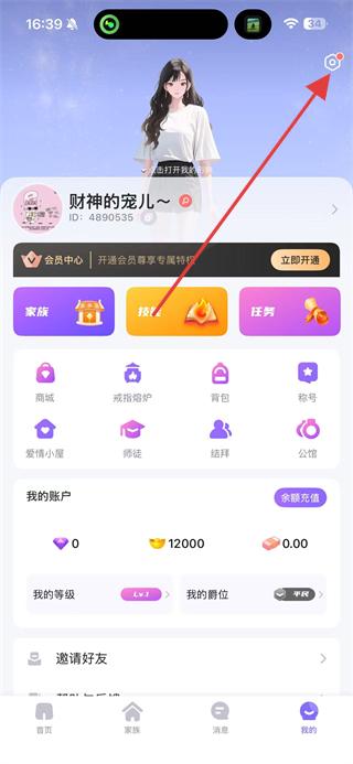2、在個人頁面點擊右上角設置圖標,進入包含賬號、隱私等配置的設置頁面。