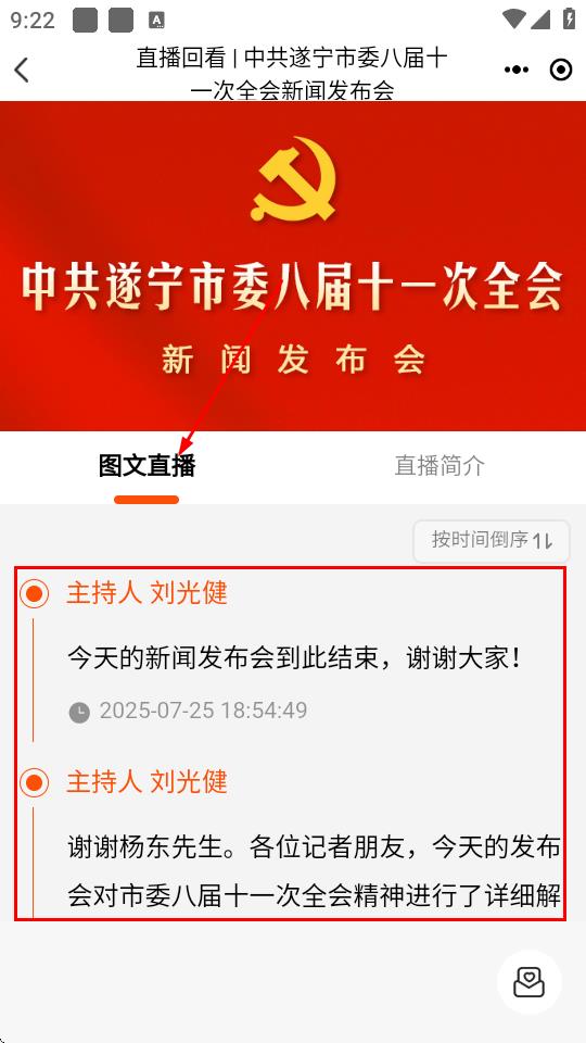3、點擊感興趣的直播內(nèi)容,進入后查看圖文直播板塊,能看到直播過程中的文字等信息。