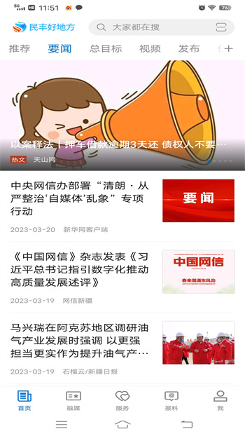 民豐縣融媒體中心打造了以廣播電視、兩微一端、抖音等為主的傳媒矩陣?!懊褙S好地方”客戶端是根據(jù)中央、自治區(qū)的要求,適應(yīng)當(dāng)前快速傳播規(guī)律,牢牢掌握意識形態(tài)領(lǐng)域主動權(quán)而建設(shè)的自主可控的平臺,在落實移動優(yōu)先、內(nèi)容為王戰(zhàn)略中起著至關(guān)重要的作用。能夠更好地宣傳群眾、引導(dǎo)群眾、服務(wù)群眾。