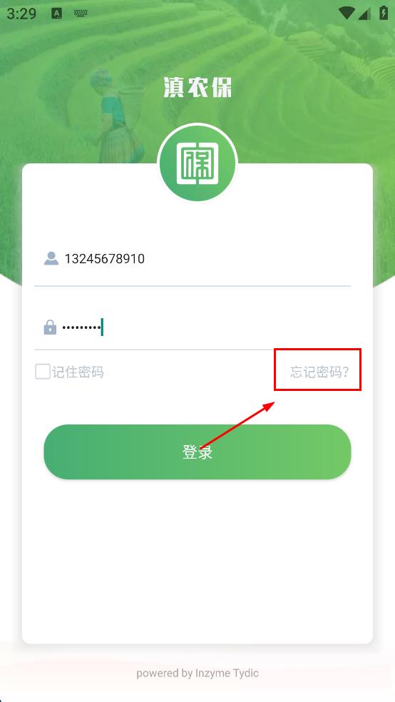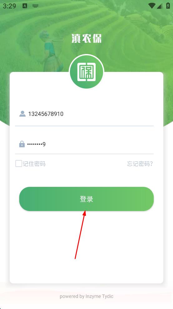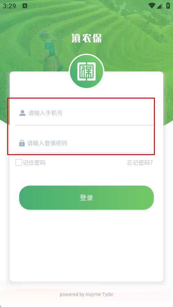 1、打開滇農(nóng)保APP,進入登錄頁面,輸入手機號和登錄密碼。