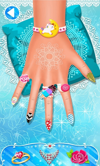 來這個(gè)美甲沙龍游戲設(shè)計(jì)一些特殊的美甲。在這個(gè)令人驚嘆的沙龍中,您真的會(huì)感覺像是一位專業(yè)造型師。幫助所有客戶對新設(shè)計(jì)的指甲感到特別滿意。